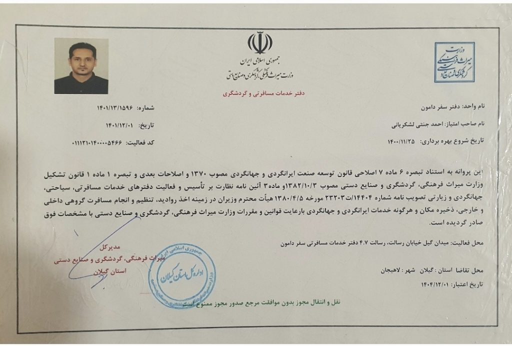 Address: Safar Damon travel co, Resalat st Gil Sq Lahijan Gilan Province